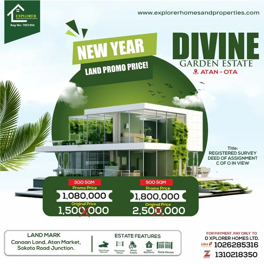 I am thrilled π₯³to announce the launch of our estate ποΈπ (Divine Garden Estate) located strategically in Atan- Ota Ogun State Nigeria.